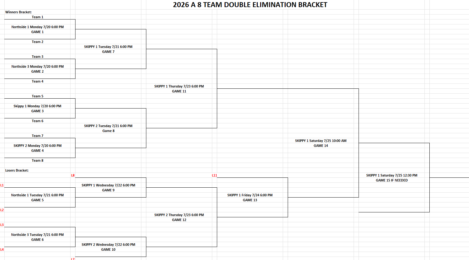 : 8 Team Double Elimination Bracket